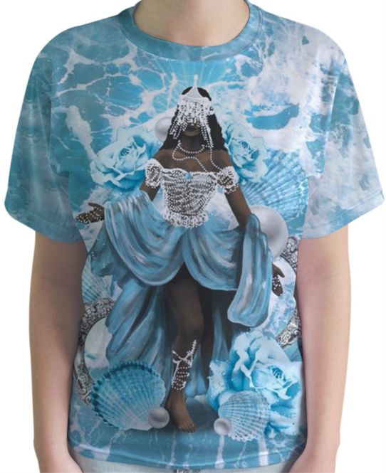 Camiseta de Iemanjá em sublimação total, imagem em alta definição.