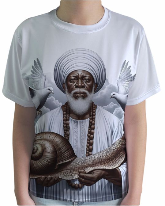 Camiseta de Oxala em sublimação total, imagem em alta definição.