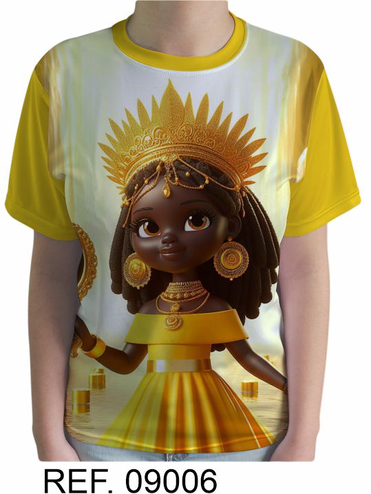 Camiseta de Oxum em sublimação total, imagem em alta definição.