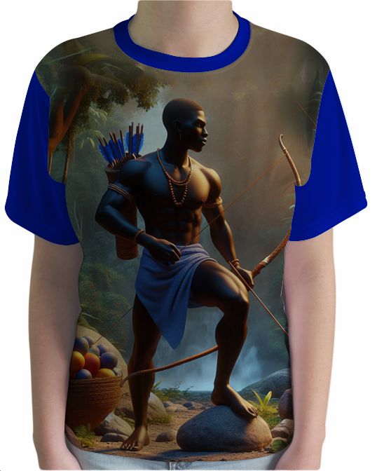 Camiseta de Odé em sublimação total, imagem em alta definição.